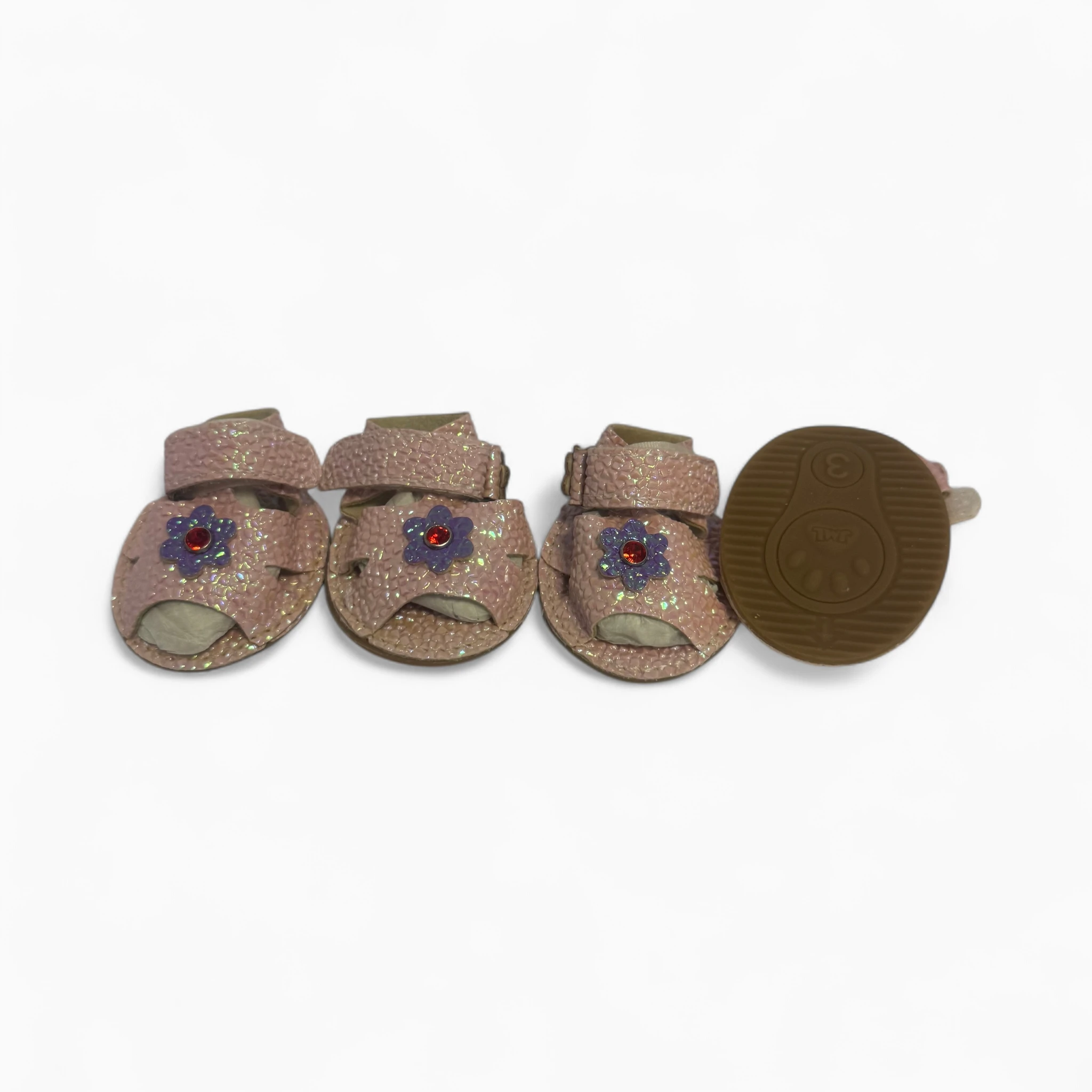Подарите питомцу стиль и комфорт с Босоножками для собак «Цветок» от "Офелии". Эти мерцающие сандалии станут изюминкой образа, привлекая взгляды.