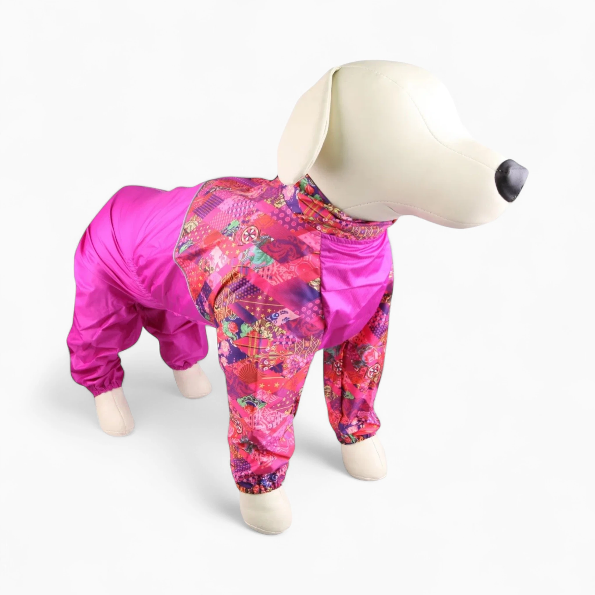 Изготовленный из высококачественной водонепроницаемой и ветрозащитной плащевой ткани, дождевик надежно оберегает шерсть от намокания и загрязнений. Яркий, эффектный принт с насыщенным фуксиевым оттенком подчеркнет индивидуальность питомца и сделает его заметным. Прочные швы и продуманный крой гарантируют долговечность и свободу движений.