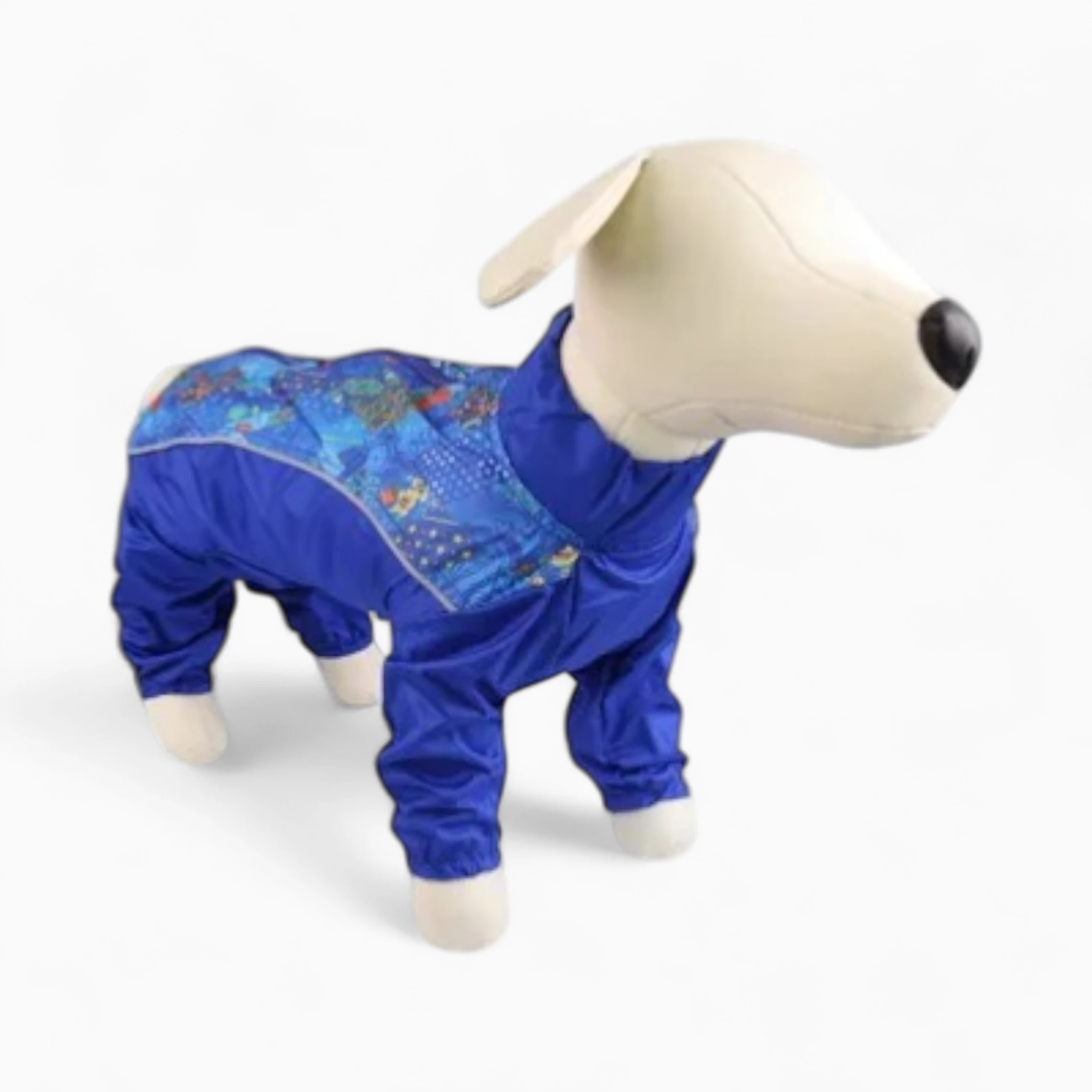 Этот яркий комбинезон создан из высококачественной водонепроницаемой плащевой ткани, надежно защищающей от дождя, грязи и ветра. Его изюминка — красочный принт на спине со светоотражающими элементами, обеспечивающими безопасность питомца в сумерках. Легкий, но прочный материал гарантирует долговечность и полную свободу движений.