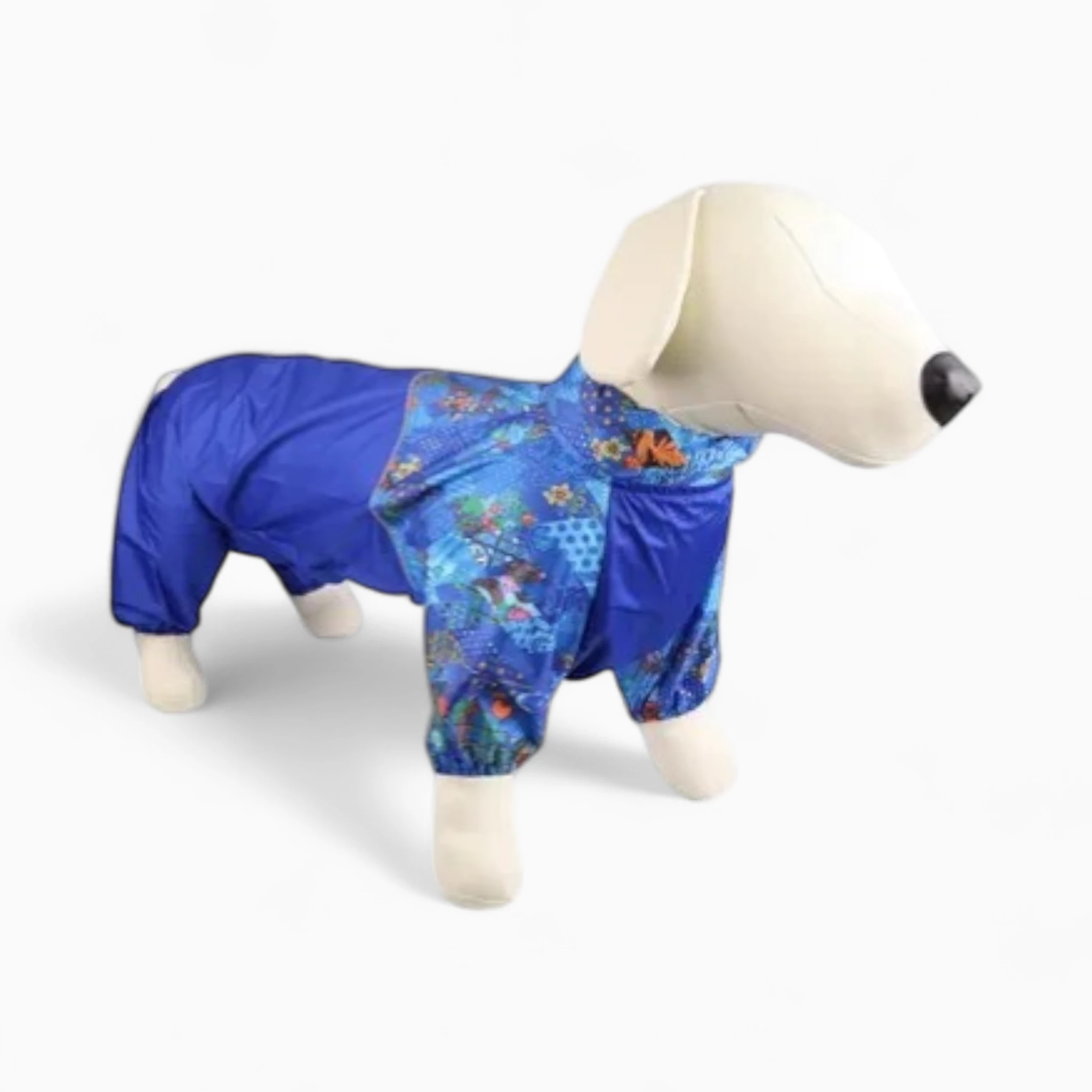 Изготовленный из высококачественной водонепроницаемой плащевки, дождевик надежно защитит шерсть вашей таксы от дождя и грязи. Основная часть выполнена в насыщенном синем цвете, а спинка украшена эксклюзивным принтом "Тюльпан", который добавит яркости и индивидуальности образу питомца. Материал легкий, прочный и не стесняет движений.