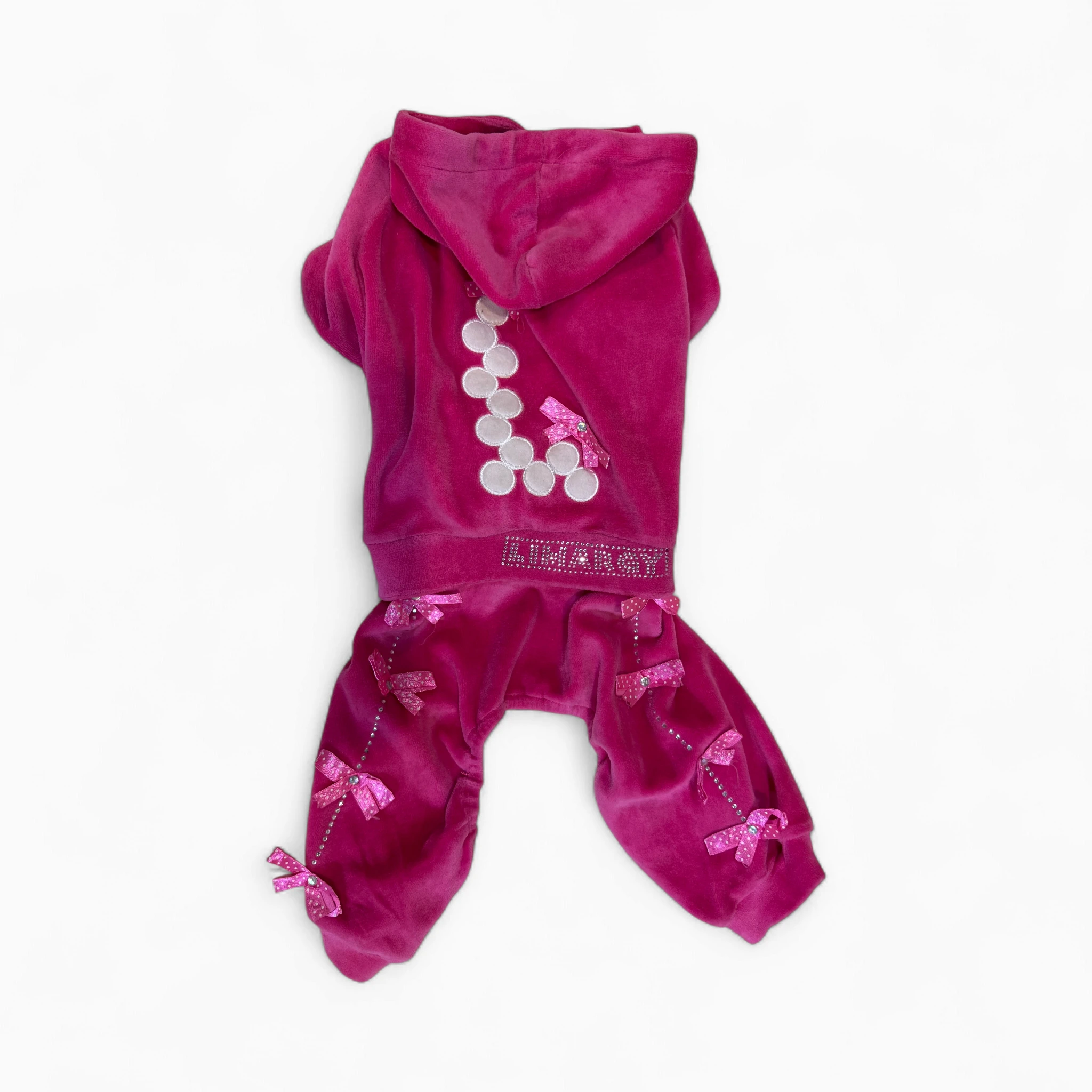 Костюм велюровый «Бантики» от "Офелии" – это воплощение стиля и нежности для вашего питомца. Элегантный комбинезон , украшенный бантиками и сияющими стразами, подарит любимцу неотразимый вид и комфорт на прогулках.