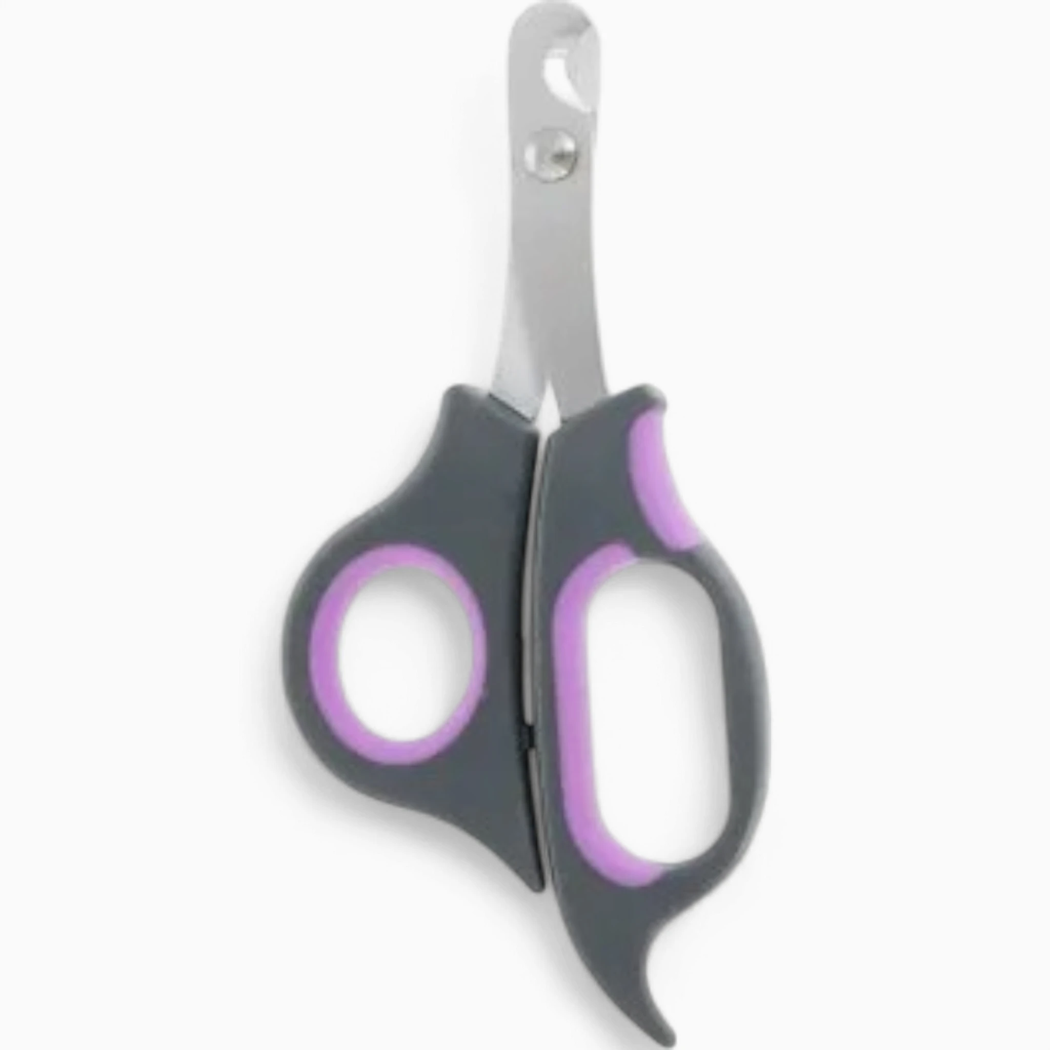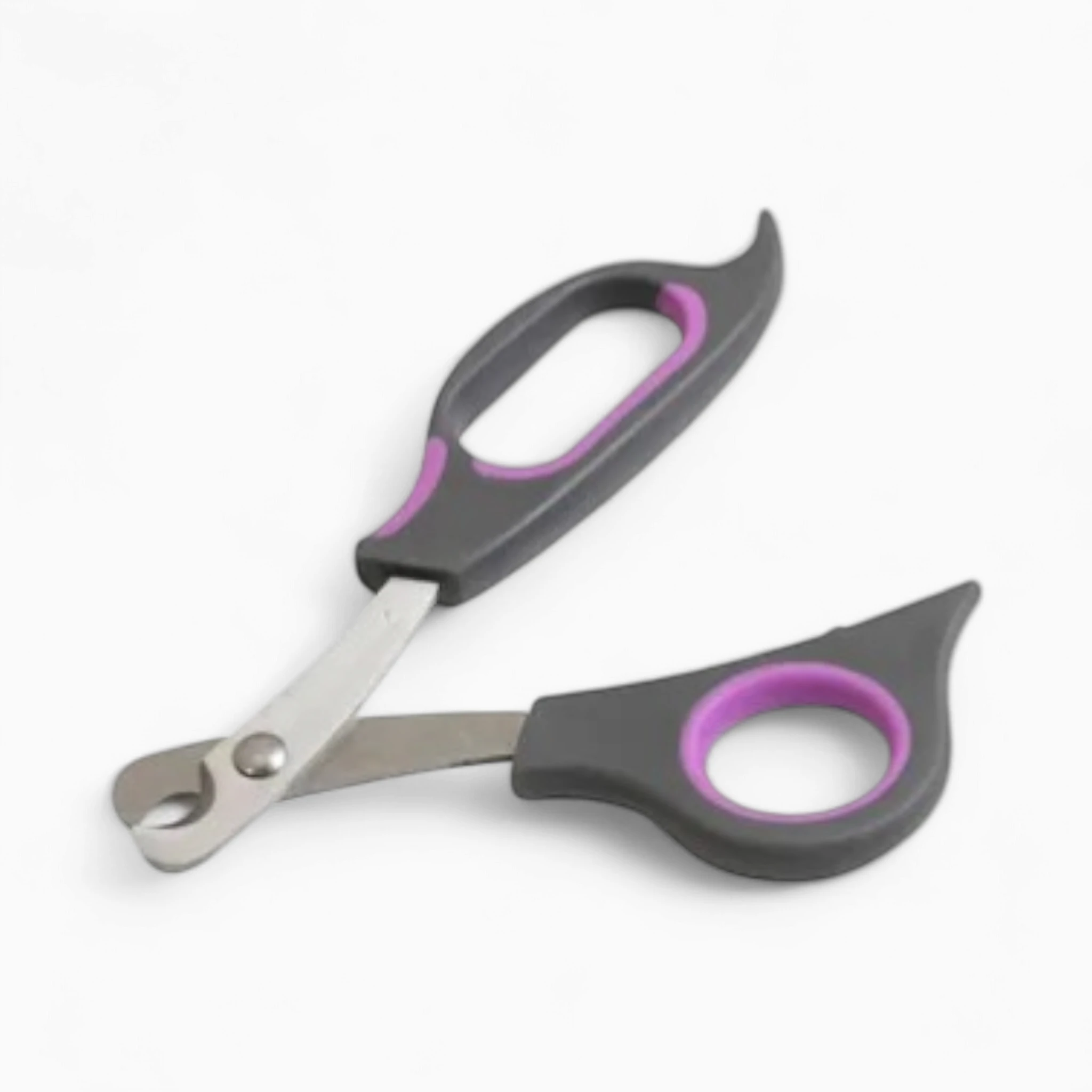 Острые лезвия инструмента изготовлены из прочной нержавеющей стали, гарантируя точный и быстрый срез без расслоения или дискомфорта для лап. Эргономичные ручки с мягкими вставками фиолетового цвета обеспечивают надежный хват и максимальное удобство в использовании, превращая рутинную процедуру в легкое занятие.