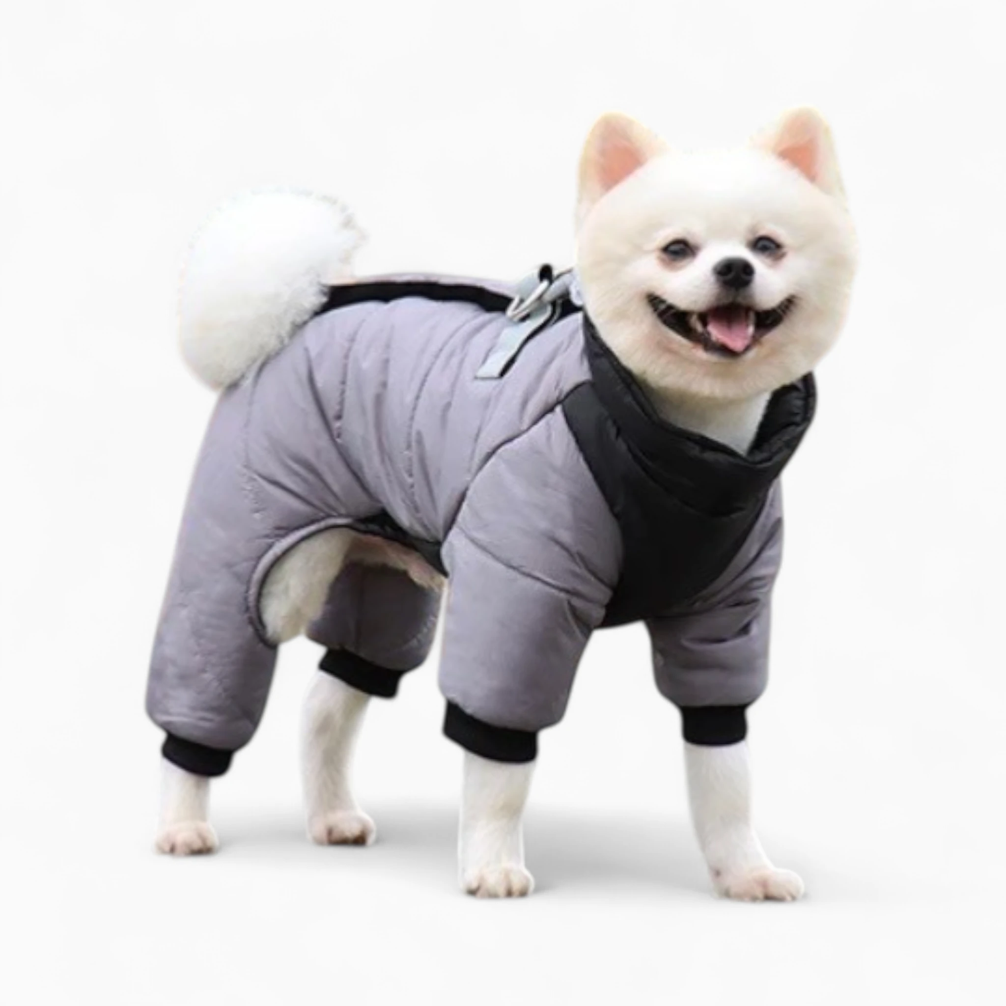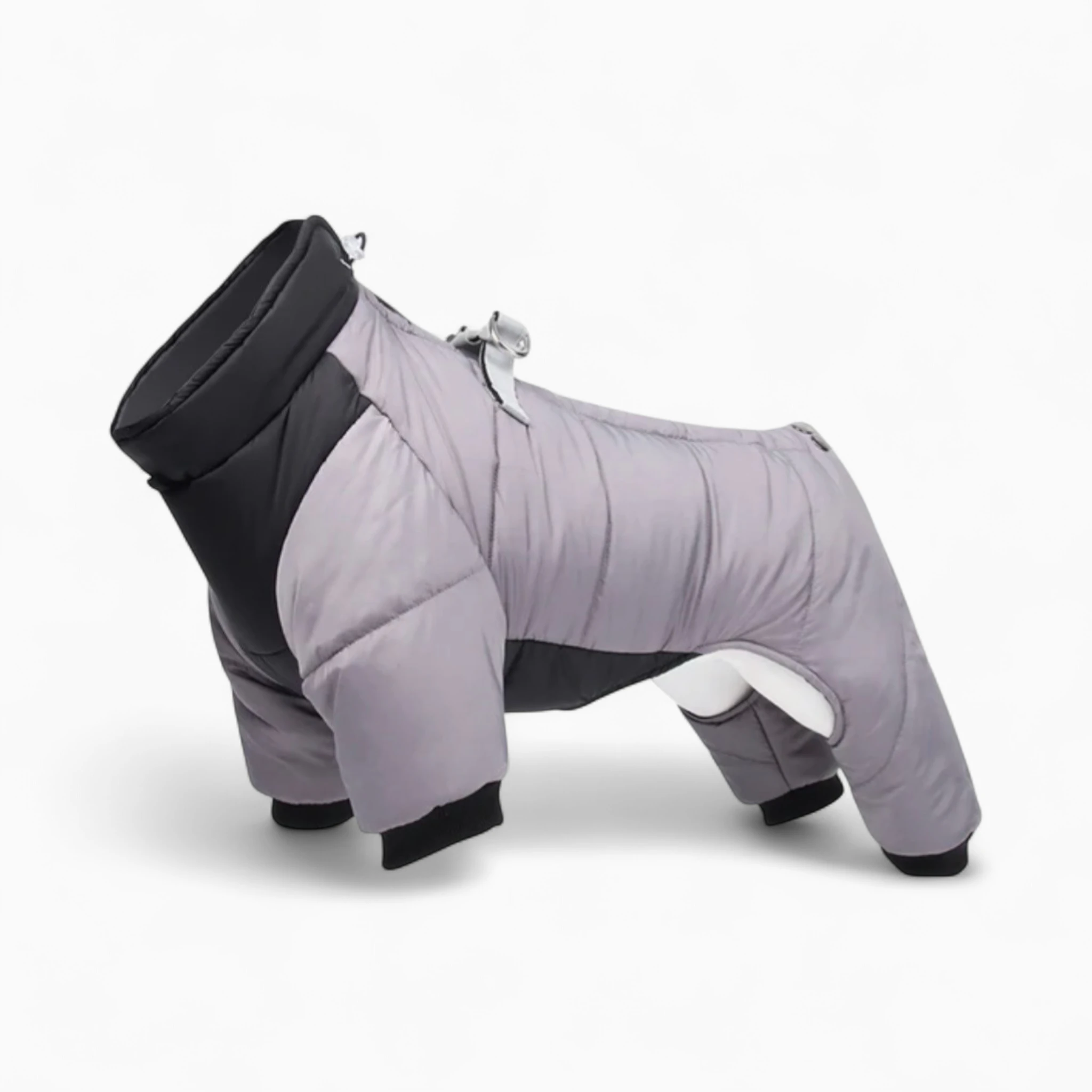 Этот комбинезон не только согреет вашего питомца, но и позволит ему выглядеть безупречно. Двухцветный дизайн (практичный серый и элегантный черный) подчеркнет индивидуальность стиля вашей собаки. Удобные крепления обеспечивают легкое надевание и надежную фиксацию.