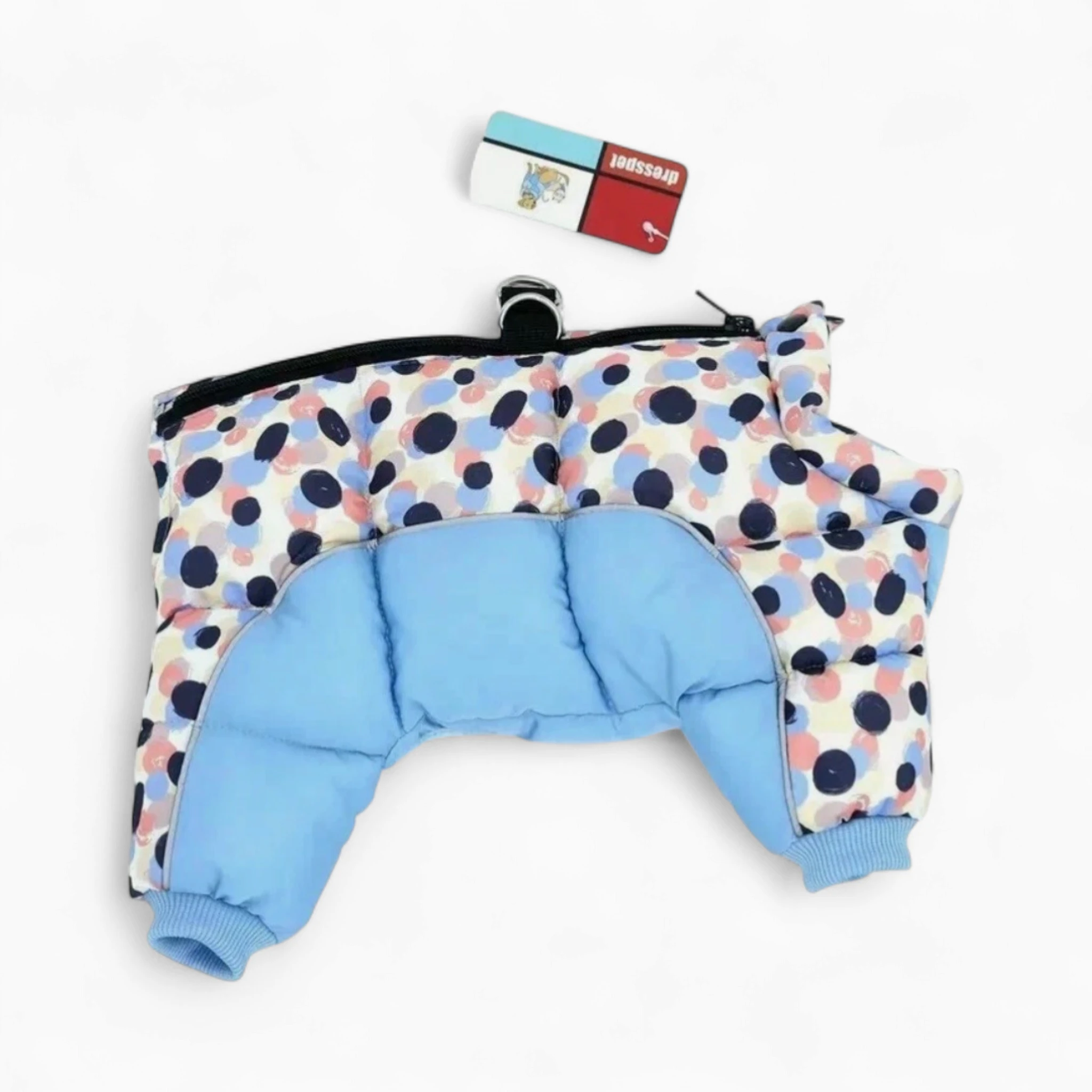 Данная модель с закрытым животиком, подходит для мальчика и для девочки. Обеспечьте вашему любимцу тепло и неповторимый стиль с зимним комбинезоном «Горошек». Этот модный и функциональный наряд идеально подходит для холода, выделяя питомца на любой прогулке.