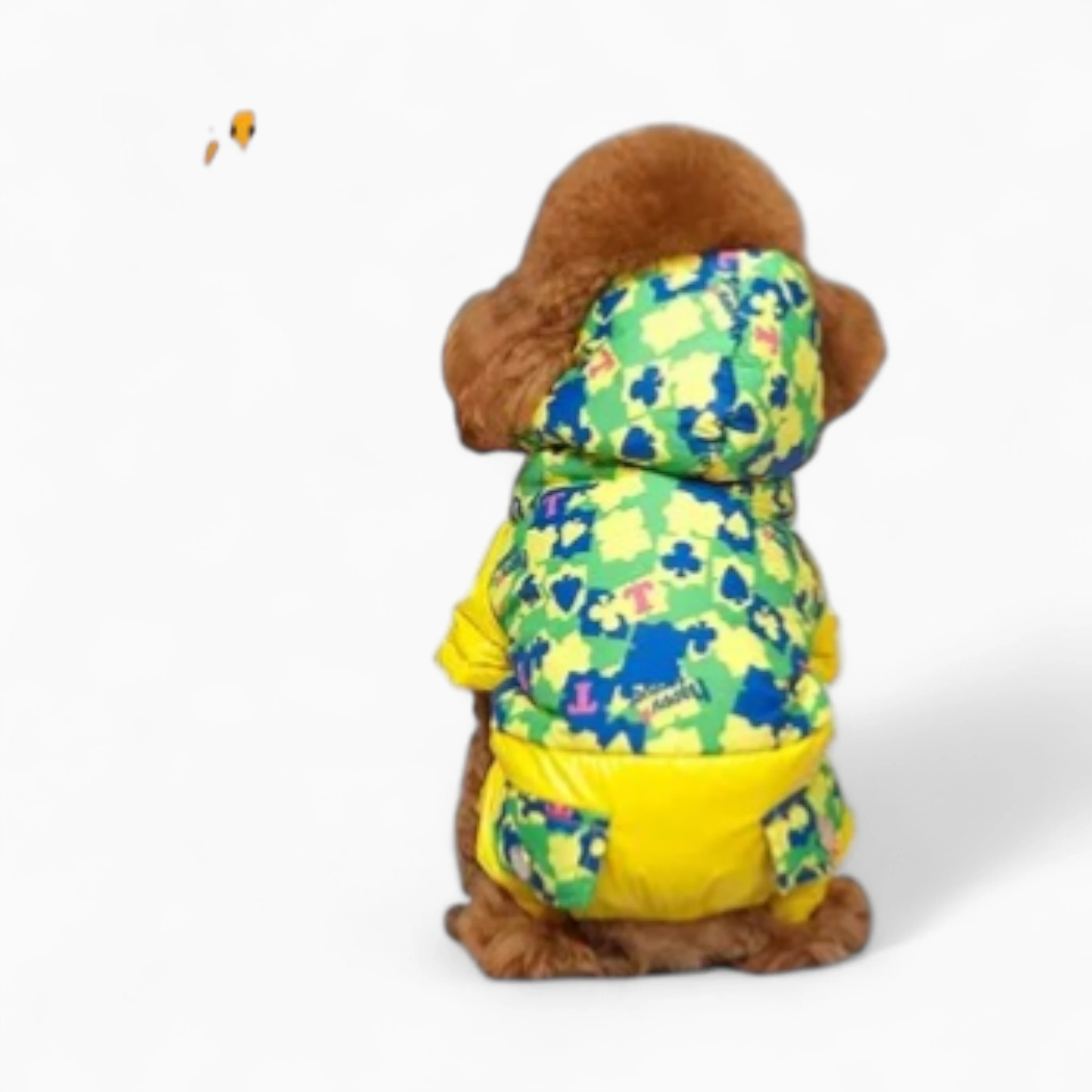 Легкий и удобный, он идеально подходит для активных прогулок в прохладную погоду. Капюшон дополнительно убережет голову и уши. Яркий дизайн с контрастными вставками и узнаваемым принтом не только выделит вашего питомца на прогулке, но и поднимет настроение вам обоим. Практичные кармашки добавляют функциональности и стиля.