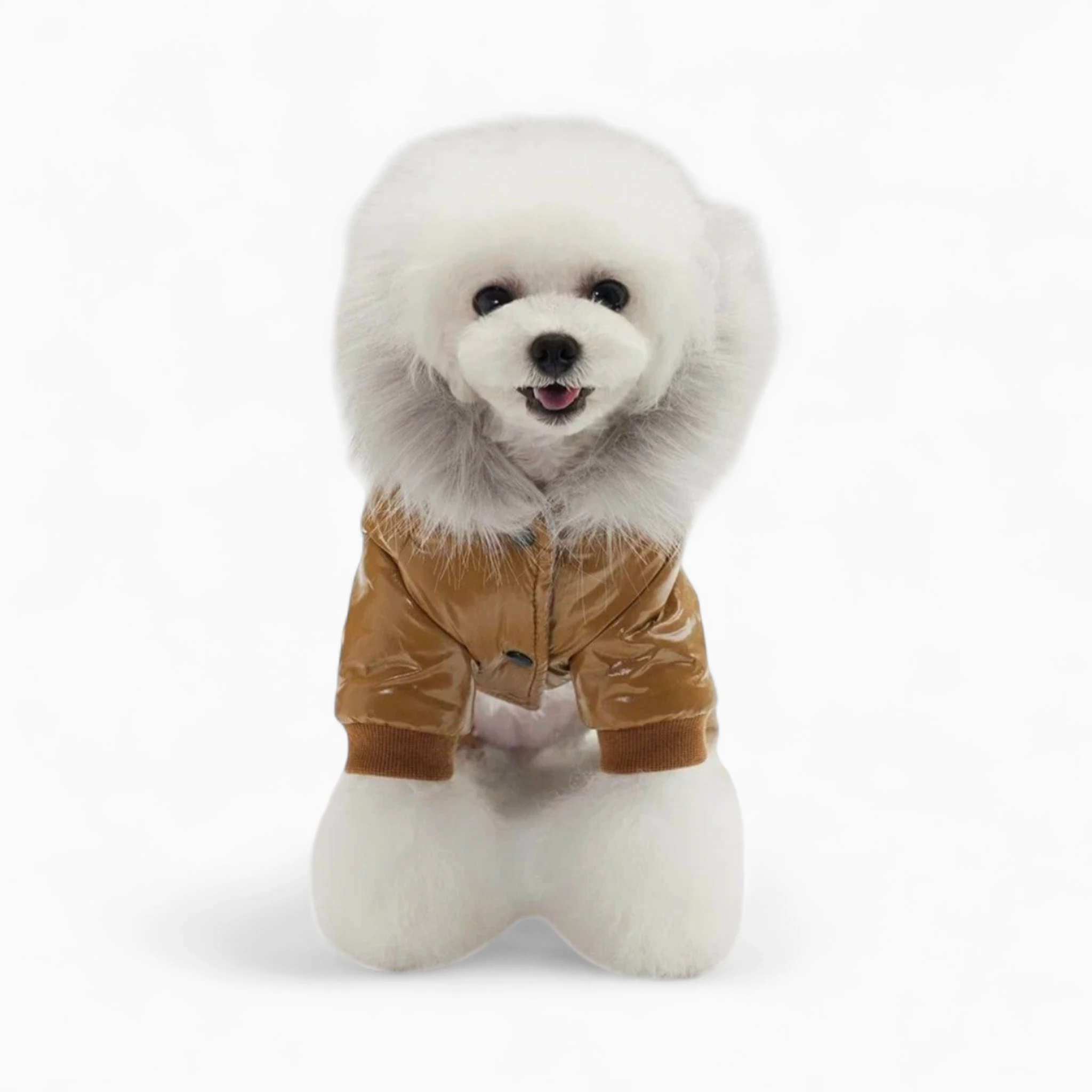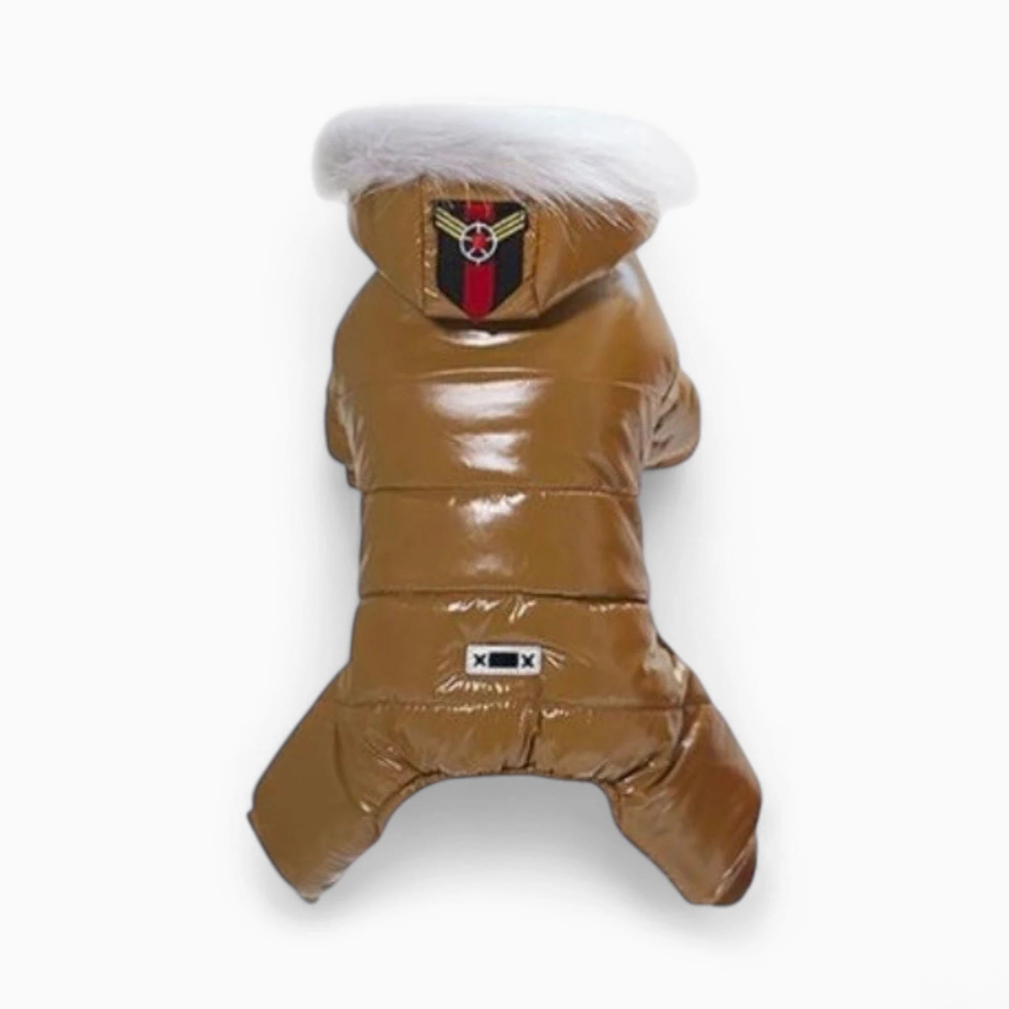 Изготовленный из прочного влагоотталкивающего материала с теплой набивкой, комбинезон отлично согревает и оберегает от ветра, осадков. Пушистый белый мех на капюшоне и стильные нашивки добавляют роскоши. Эргономичный крой гарантирует полную свободу движений для активных игр. Владелец будет уверен в защите и безупречном стиле питомца.