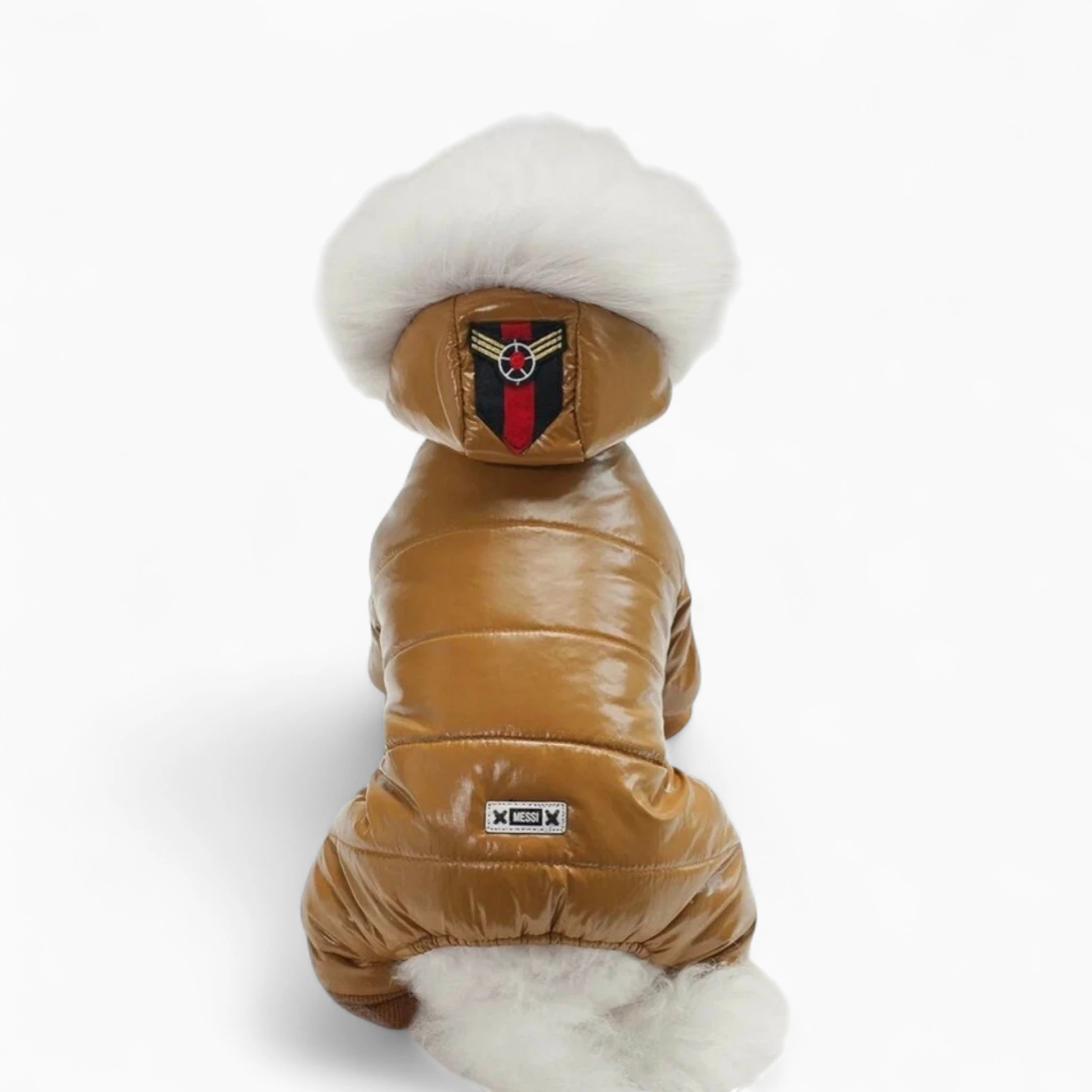 Комбинезон «Messi» — идеальный выбор для владельцев, ценящих стиль и комфорт питомца. Яркий глянцевый комбинезон обеспечит любимцу эффектный вид и надежную защиту в холодное время года.