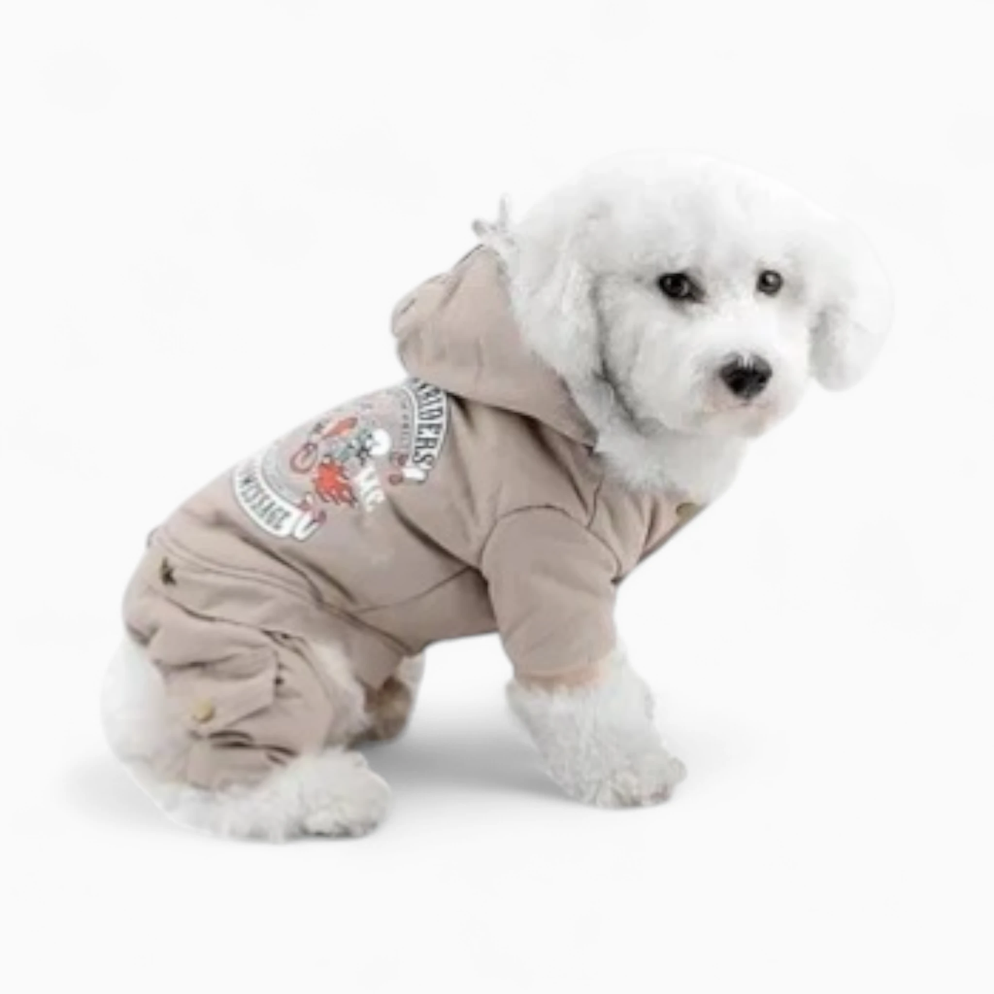 Подчеркните характер вашего питомца с комбинезоном «Moto» от «Офелии»! Это стильное решение для прогулок в холодную погоду, сочетающее дерзкий дизайн и безупречный комфорт.