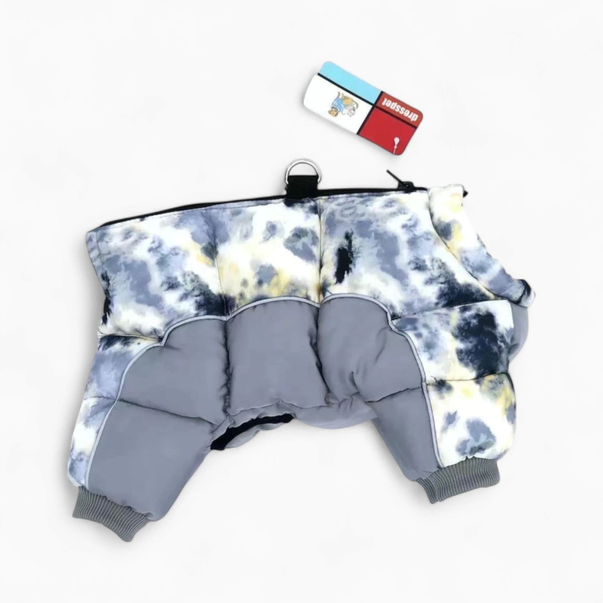 Выполненный из высококачественных, износостойких материалов, он оснащен мягкой набивкой для сохранения тепла. Уникальный "облачный" принт и эластичные манжеты подчеркивают стиль, обеспечивая плотное прилегание и защиту от ветра. Удобная молния на спине и встроенное кольцо для поводка делают одевание легким, а прогулки – беззаботными. Ваша собака будет наслаждаться свободой движений, вы – ее безупречным видом.