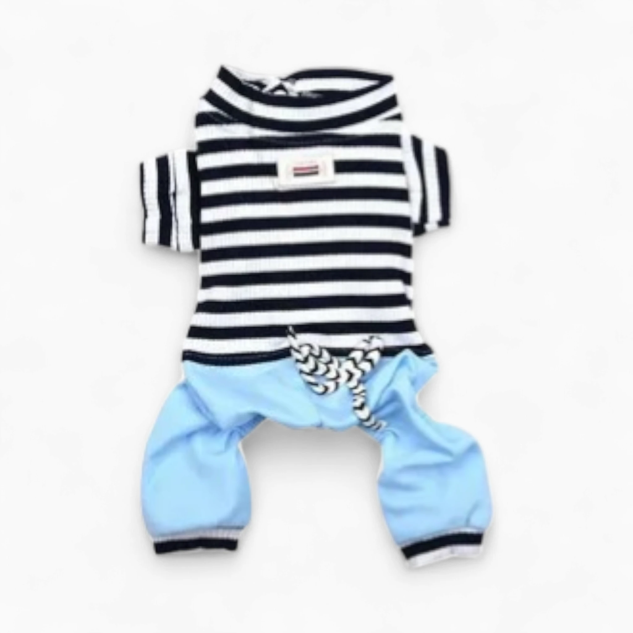 Подарите питомцу стиль и комфорт с "Костюмом «Бонжур»". Идеальный комбинезон для прогулок и дома, он подчеркнет индивидуальность вашего друга.