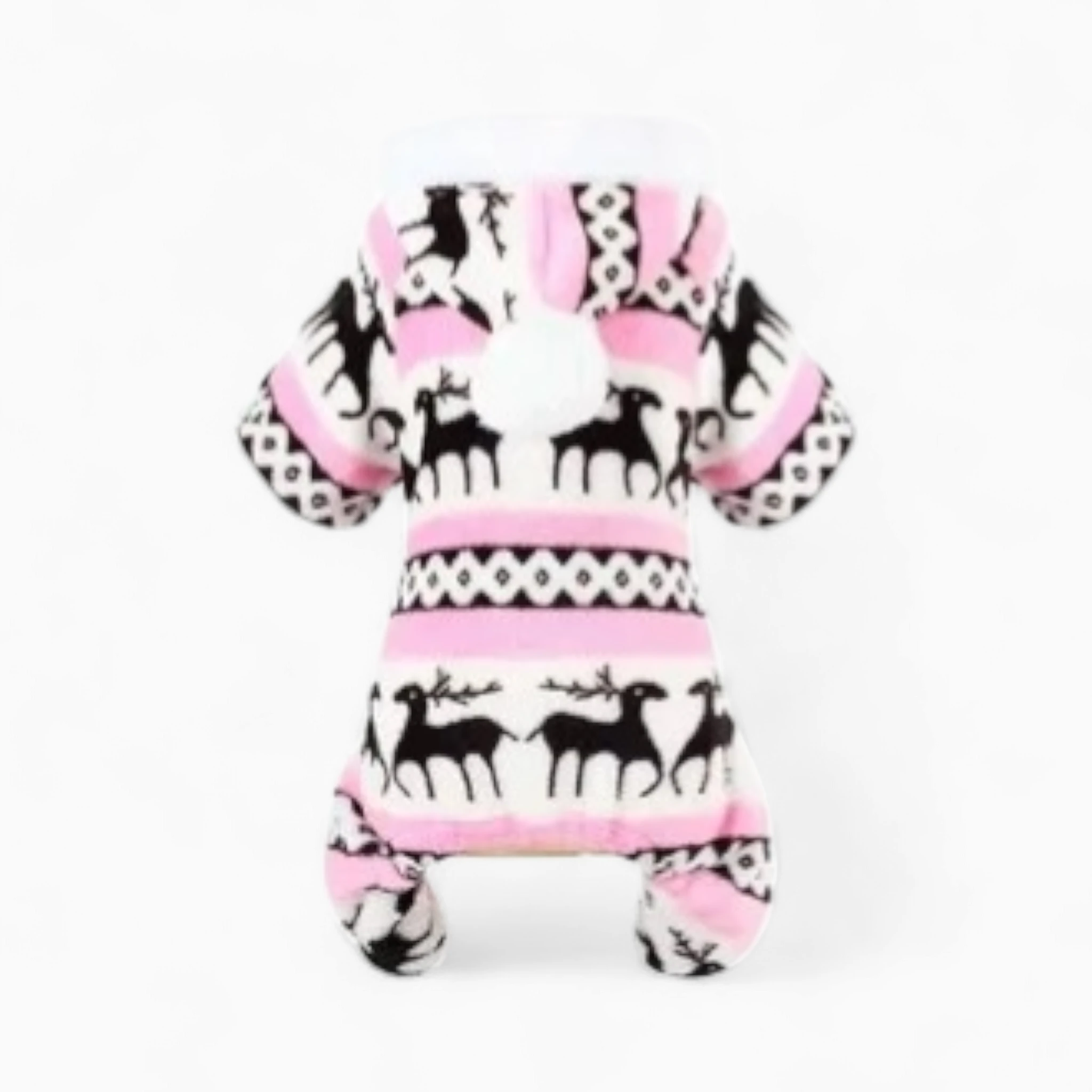 Костюм «Олени» не только согреет любимца, но и подчеркнет его индивидуальность благодаря стильному скандинавскому узору с милыми оленями и забавному капюшону с пушистым помпоном. Эргономичный крой обеспечивает свободу движений, а удобные рукава защитят лапки от холода. Вы будете в восторге от того, насколько очаровательно и уютно выглядит ваш питомец!