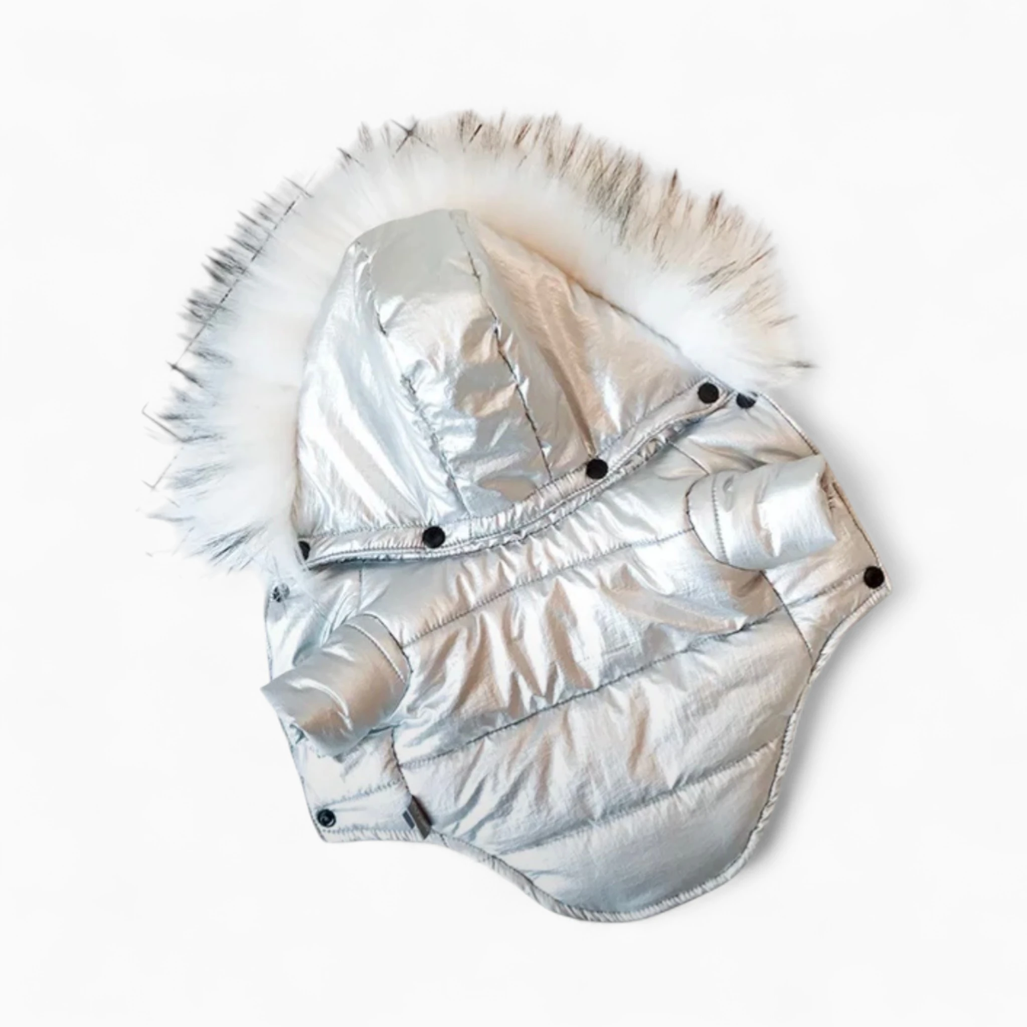 Сделайте прогулки вашего питомца по-настоящему стильными и теплыми с Курткой «Hola pet» для собак от "Офелии". Этот модный пуховик в эффектном серебристом цвете с роскошным меховым капюшоном станет незаменимым элементом гардероба вашего четвероногого друга, подчеркивая его индивидуальность и ваш безупречный вкус.