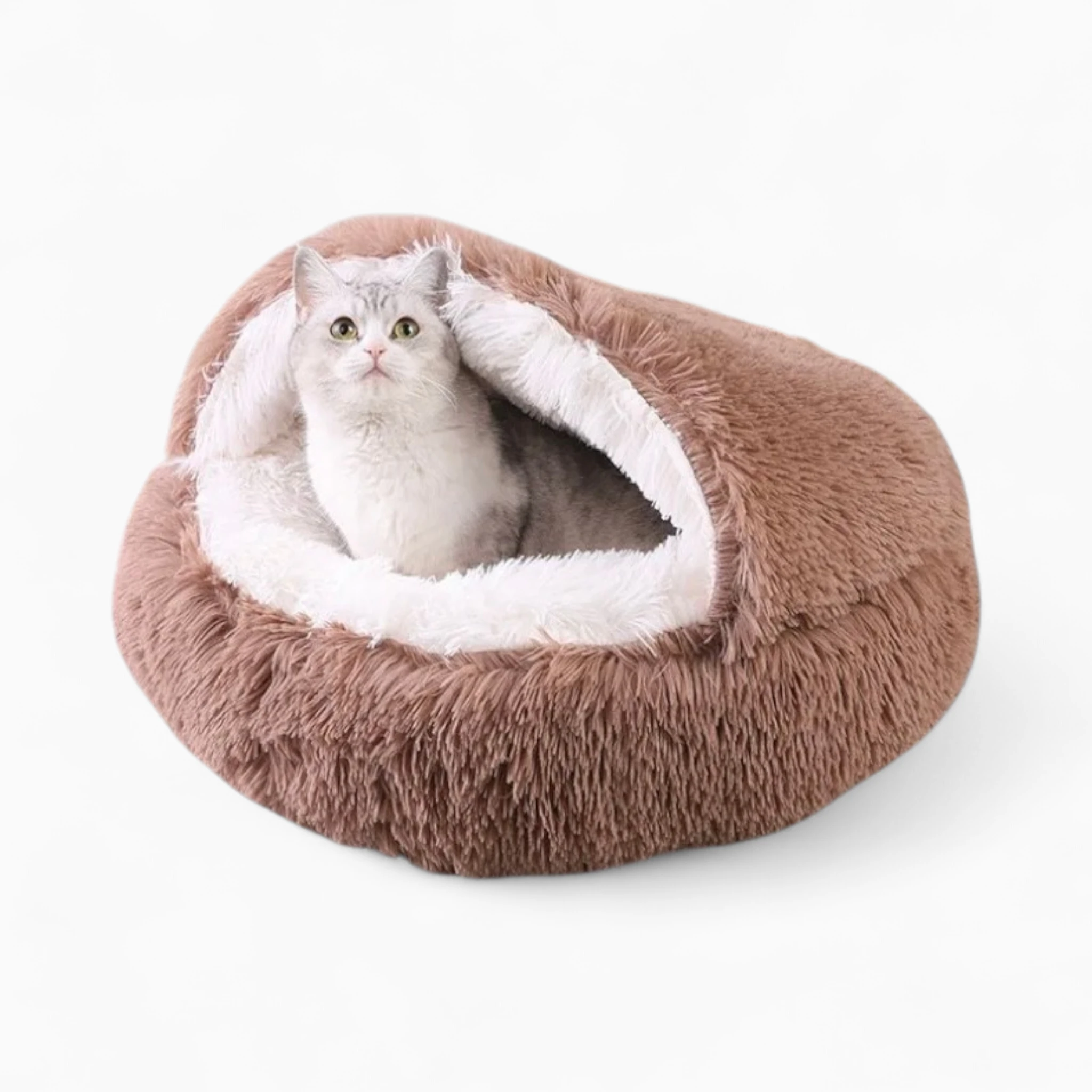 Уникальная форма «домика» создает приватное, безопасное пространство, снижая стресс и тревожность у вашего питомца. Защита от сквозняков и уютная атмосфера обеспечат крепкий, восстанавливающий сон. Элегантный дизайн лежанки легко впишется в интерьер вашего дома, став его стильным акцентом.
