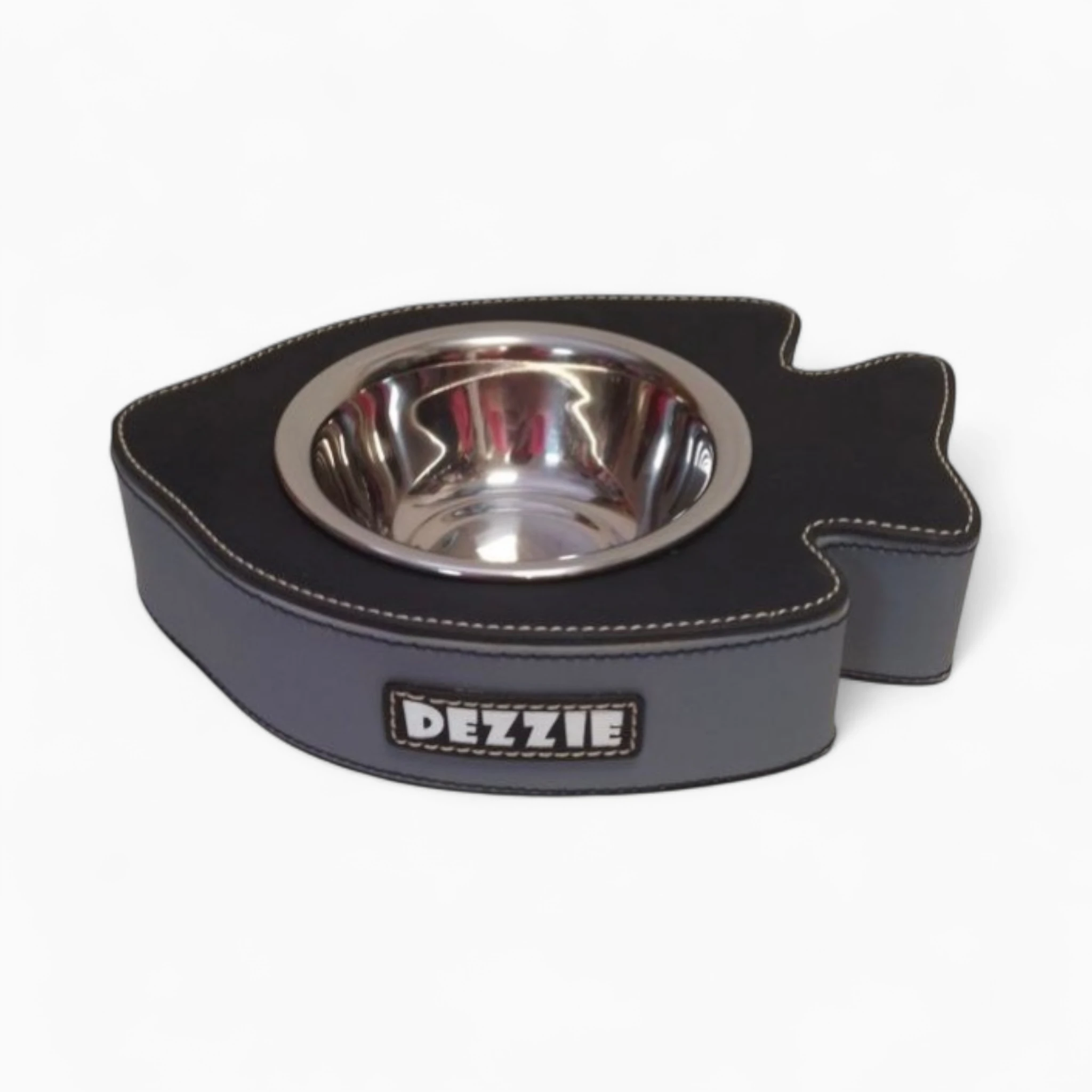 Основа миски выполнена из качественной экокожи графитового оттенка с декоративной строчкой, подчеркивающей ее элегантность и внимание к деталям. Съемная чаша из пищевой нержавеющей стали гигиенична, прочна и абсолютно безопасна для здоровья.