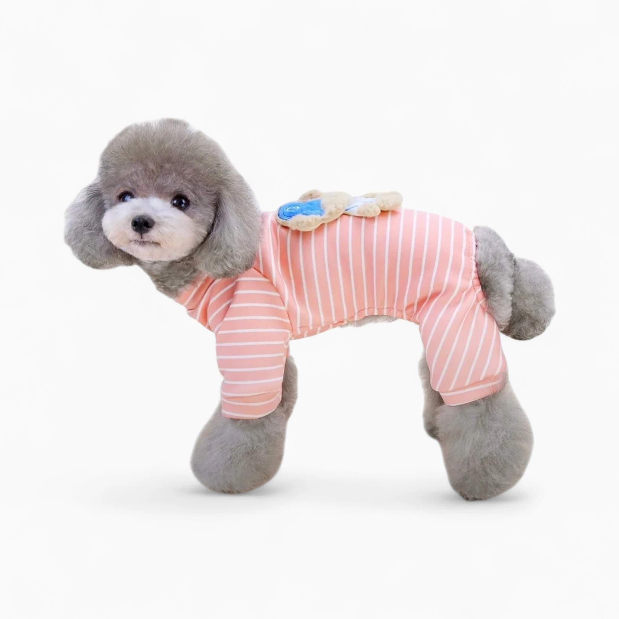 Подарите своему любимцу уют и стиль с нашей новой Пижамой «Модный мишка». Этот очаровательный комбинезон в нежную розовую полоску создан для комфортного домашнего отдыха и станет настоящим украшением вашего четвероногого друга.