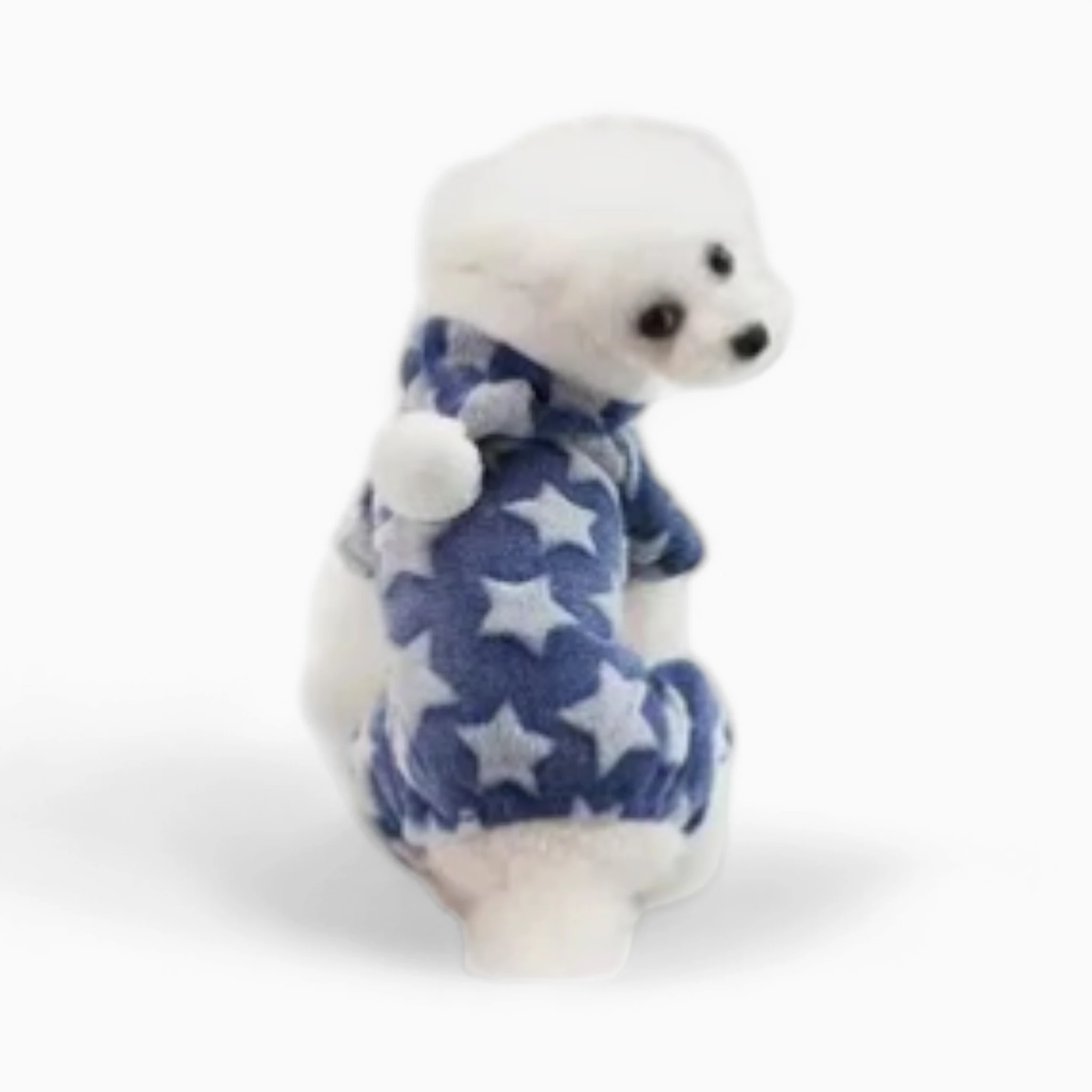 Пижама выполнена из высококачественного, невероятно мягкого плюша, который подарит вашему четвероногому другу незабываемое ощущение тепла и уюта. Дышащая ткань приятна к телу, не вызывает раздражений и идеально подходит для комфортного сна, надежно защищая от сквозняков. Стильный дизайн в нежных тонах с узором из белых звезд и забавным помпоном на капюшоне подчеркнет индивидуальность вашего любимца. Продуманный крой с эластичными манжетами гарантирует свободу движений, а долговечный материал сохранит свой вид после множества стирок.