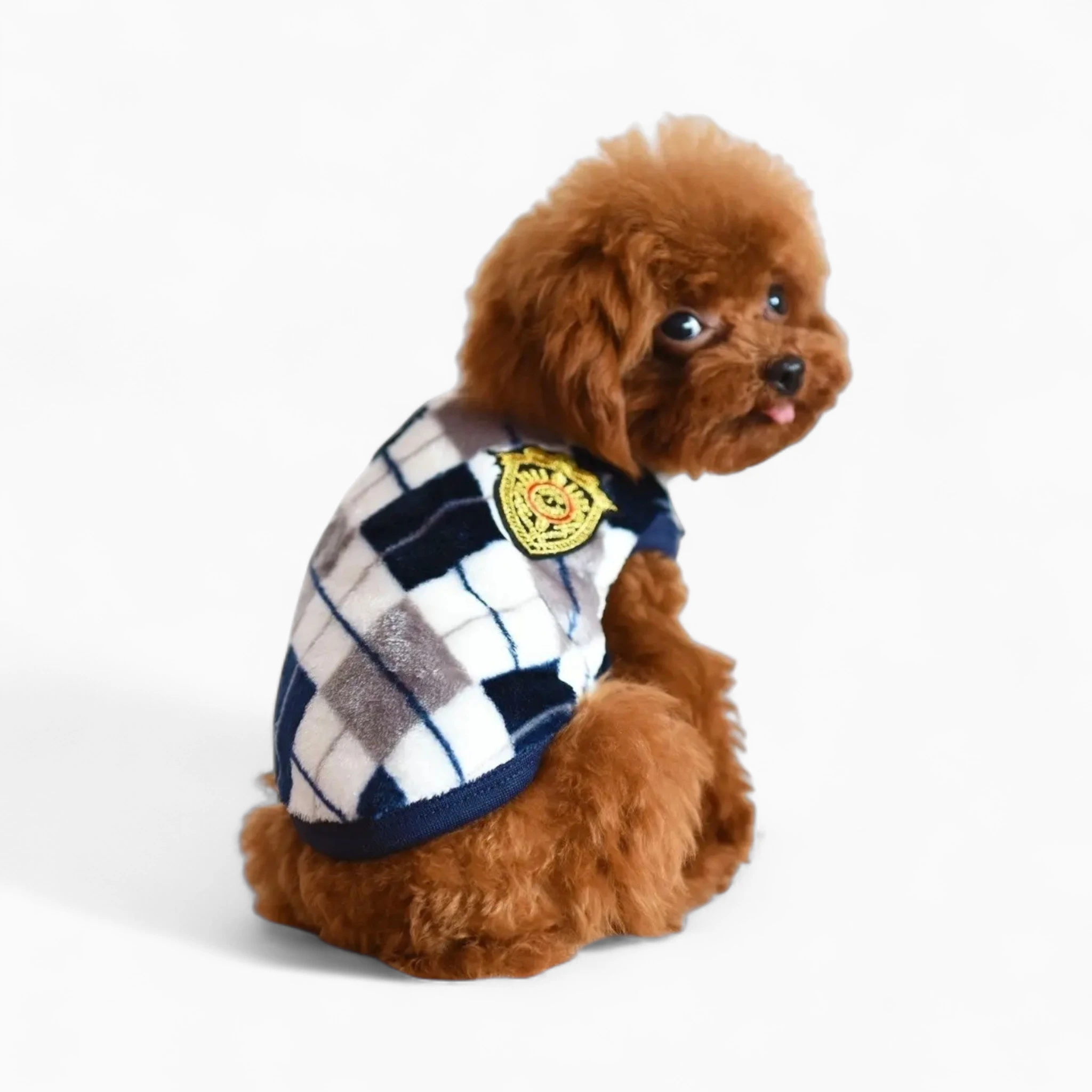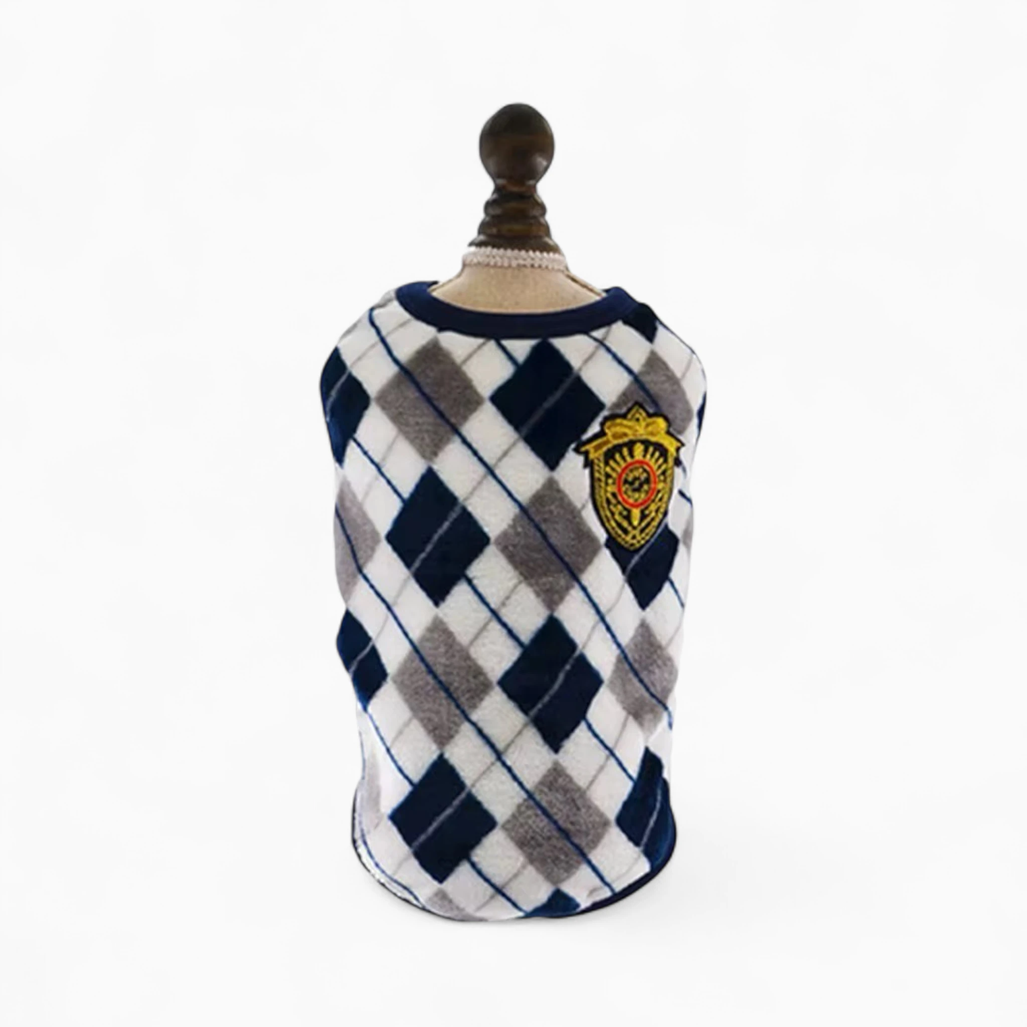 Пуловер «Шотландия» — это элегантность и комфорт для вашего питомца. Классический ромбовидный узор и изысканная нашивка-герб создадут неповторимый аристократичный образ, подчеркивая стиль вашего четвероногого друга.