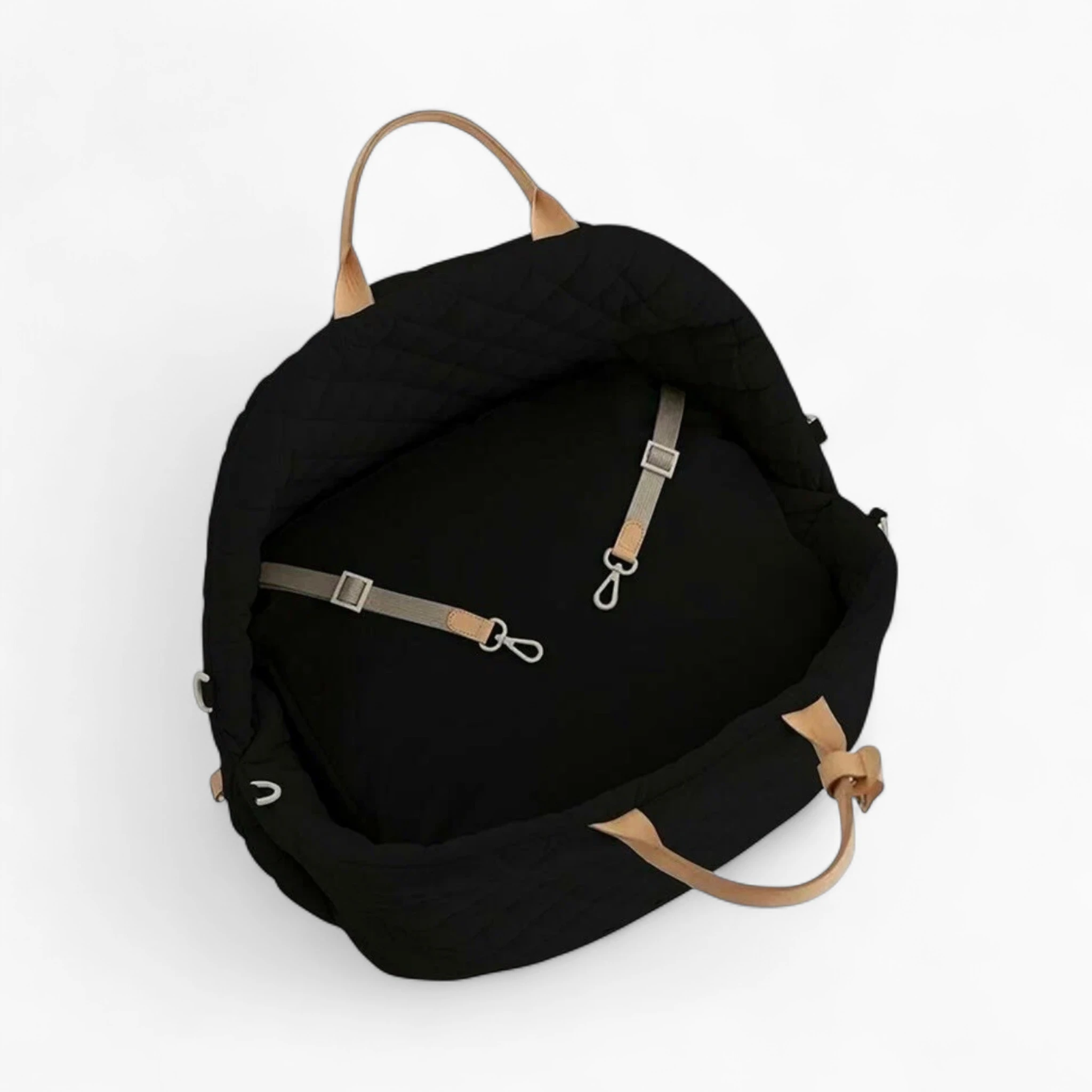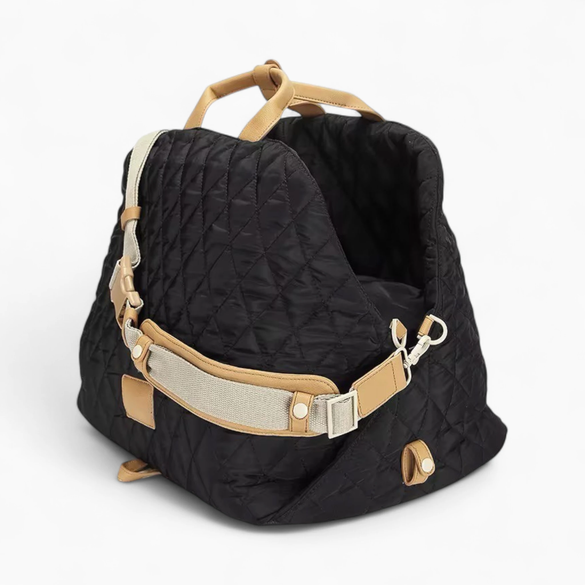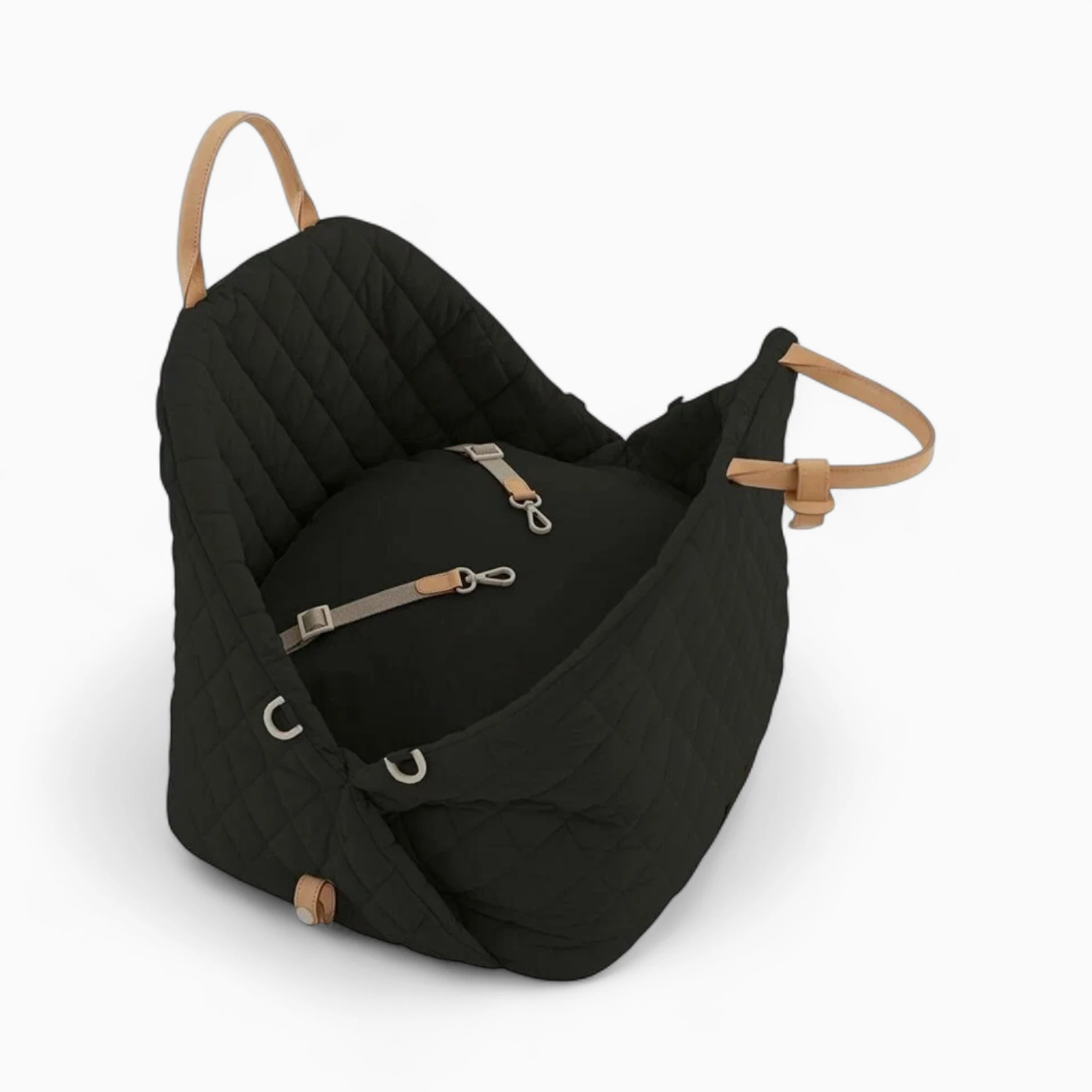 Высококачественные материалы и безупречный пошив гарантируют долговечность и безопасность изделия. Элегантный стеганый дизайн черного цвета с изящными ручками из экокожи подчеркивает ваш изысканный вкус и идеально вписывается в любой интерьер автомобиля. Мягкая, но прочная ткань обеспечивает уют и защиту для вашего питомца.
