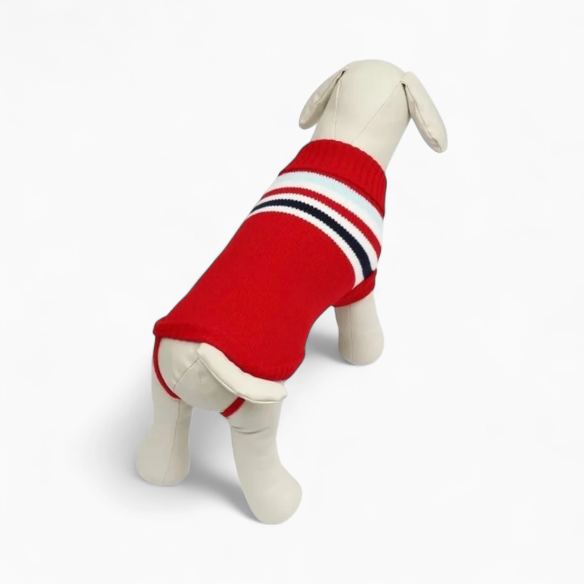 Элегантный темно-синий цвет, дополненный яркими белыми и красными полосами, придает свитеру «Luck» особый шарм, превращая вашего любимца в настоящую икону стиля. Высокий воротник дополнительно защищает шею от ветра, что особенно важно для короткошерстных пород. Это не просто одежда, а проявление вашей заботы, обеспечивающее питомцу тепло и уют во время прогулок или дома.