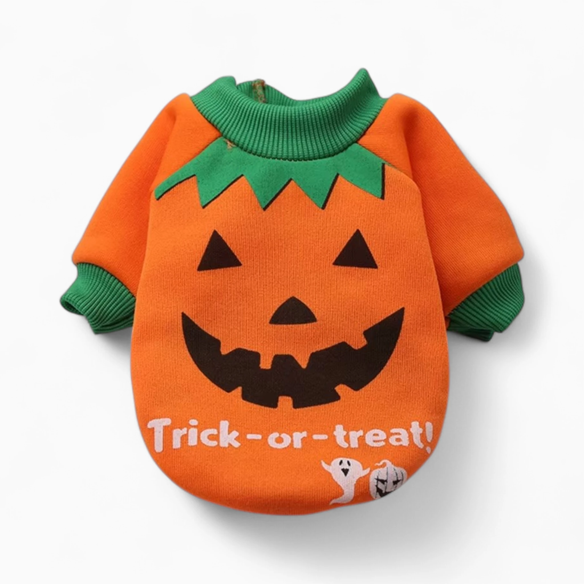 Эргономичный крой обеспечивает полную свободу движений, не стесняя питомца во время игр и прогулок. Эластичные манжеты и воротник-стойка надежно защищают от холода, обеспечивая идеальную посадку без дискомфорта. Яркий дизайн с весёлой тыквой и надписью «Trick-or-treat!» поднимет настроение и выделит вашего любимца, притягивая восхищенные взгляды.