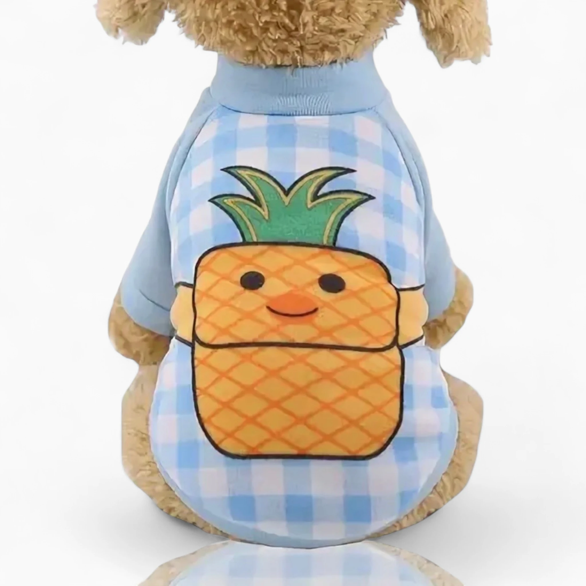 Легкая ткань согреет в прохладу без перегрева, а милый принт с ананасом на нежной клетке моментально поднимет настроение. Ваш любимец будет выглядеть модно и чувствовать себя уютно, привлекая восхищенные взгляды. Это воплощение стиля и практичности, созданное с заботой о комфорте вашей собаки.