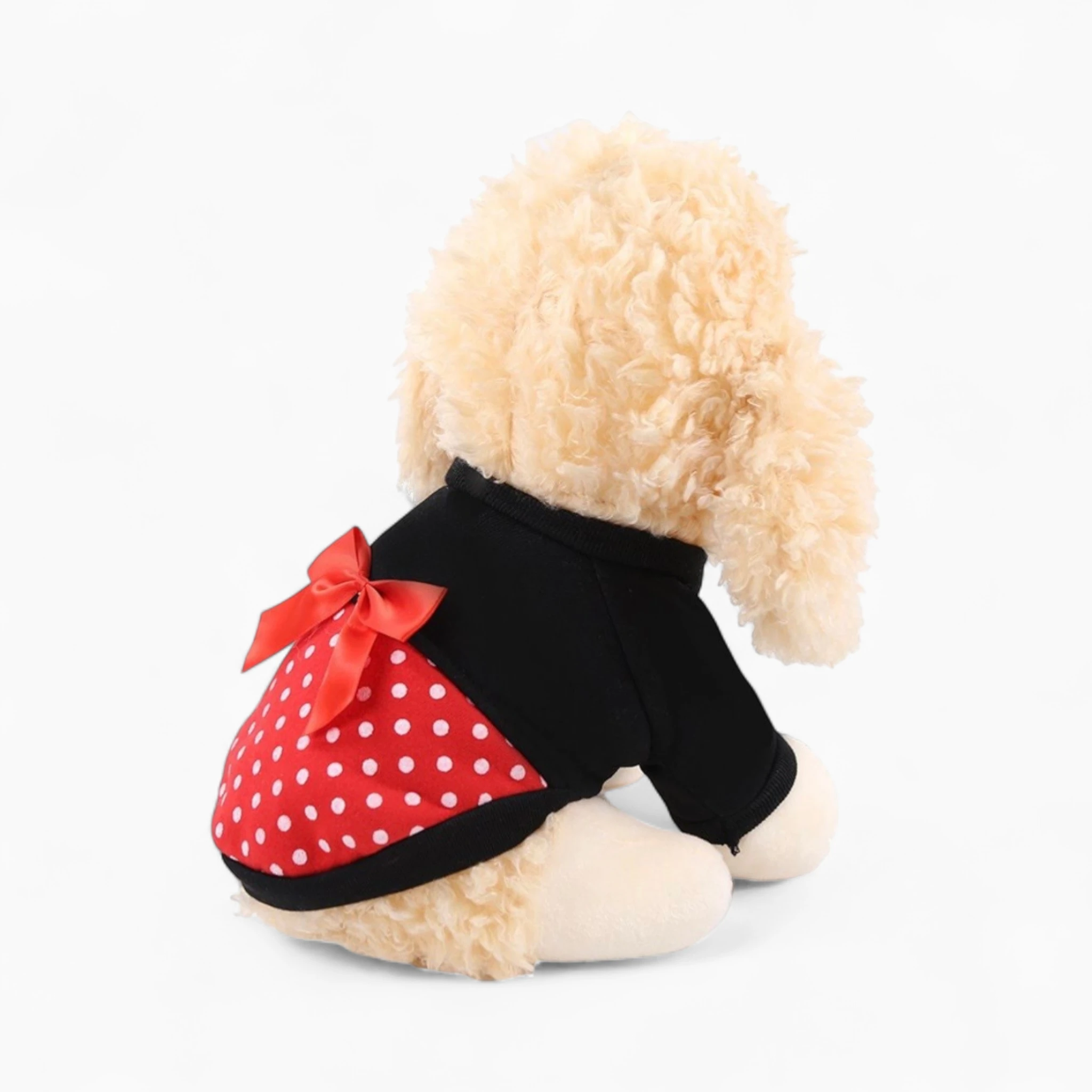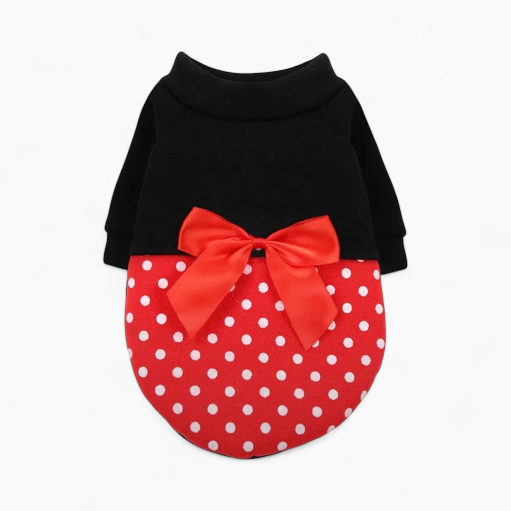 «Толстовка «Маус»» – это идеальный выбор для стильной питомицы. Наряд сочетает элегантный черный верх с уютным воротником-стойкой и яркую нижнюю часть в красный горошек, украшенную милым атласным бантиком. Изделие выполнено из мягкого, прочного материала, что гарантирует комфорт, тепло и долговечность благодаря качественному пошиву.