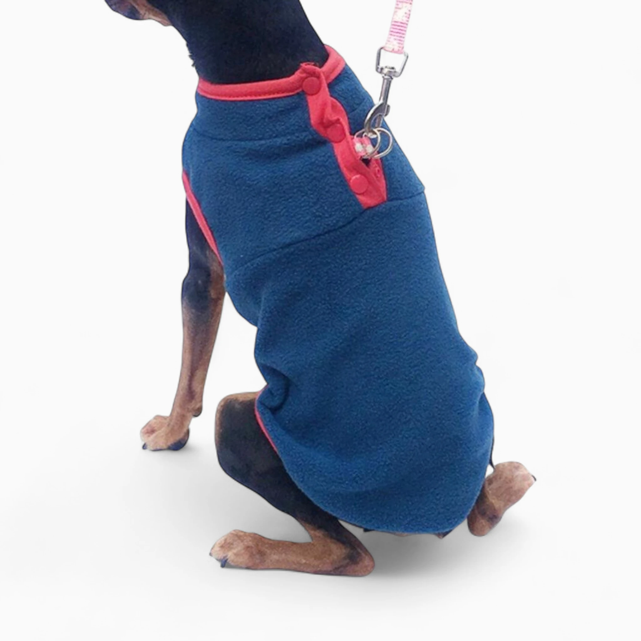 Флисовый материал прекрасно сохраняет тепло, обеспечивая собаке уют, не сковывая движений. Эргономичный крой гарантирует идеальную посадку, а функциональные кнопки на воротнике облегчают надевание и снятие. Это идеальный выбор для прогулок и домашнего отдыха.